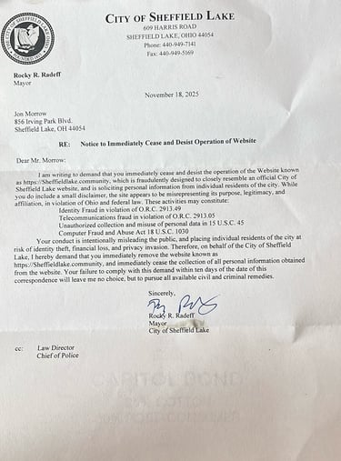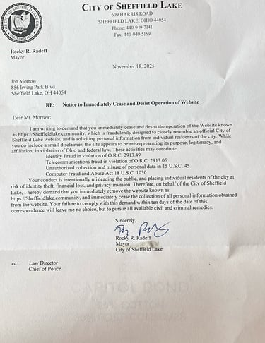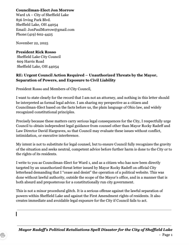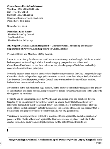 Authorized and maintained by Jon Morrow, Councilman-Elect, Ward 1, City of Sheffield Lake.