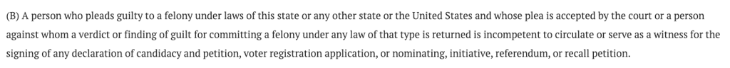 Reynolds is about removal during an active conviction. It is not a precedent for blocking a candidate years later who has completed sentence and regained civil rights.