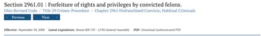 Clearly and unambiguously, a "felon" cannot hold office in Ohio - so in this respect, the law director is correct, and there is no disagreement here. But we must look at all sections of the law dealing with felons being disqualified from holding office. Including 2967.16 which states: